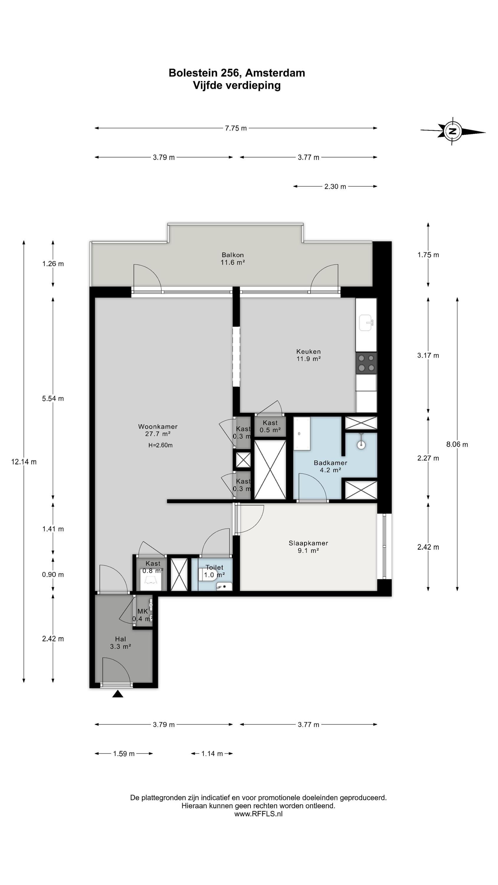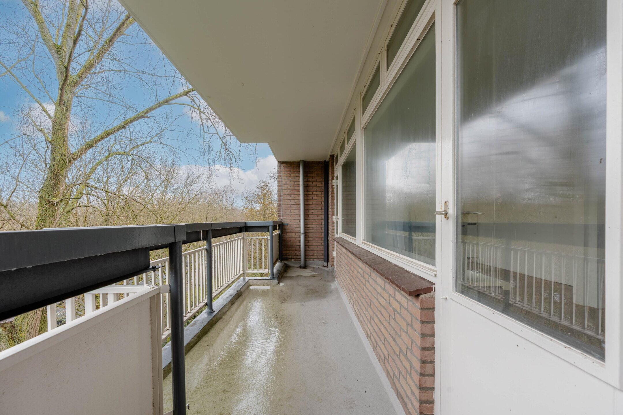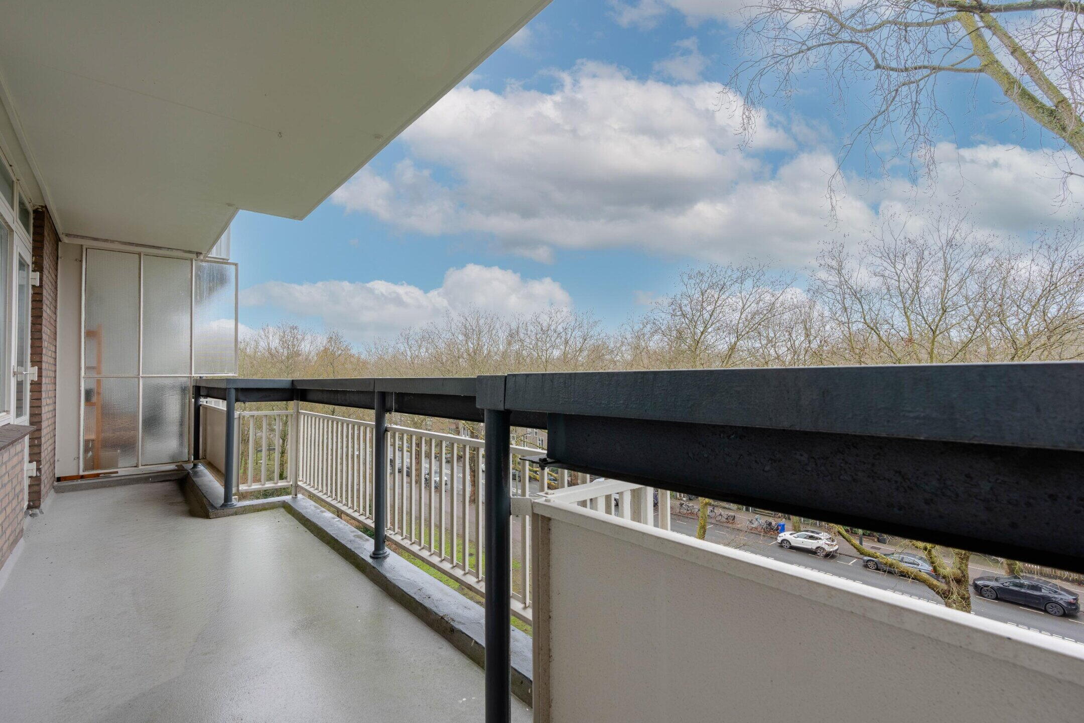 Het balkon is gelegen op het westen en biedt een fijne plek om in de middag en avond van de zon te genieten. Met een oppervlakte van circa 12m² is het balkon opvallend ruim en geschikt voor een comfortabele zit- of eethoek.