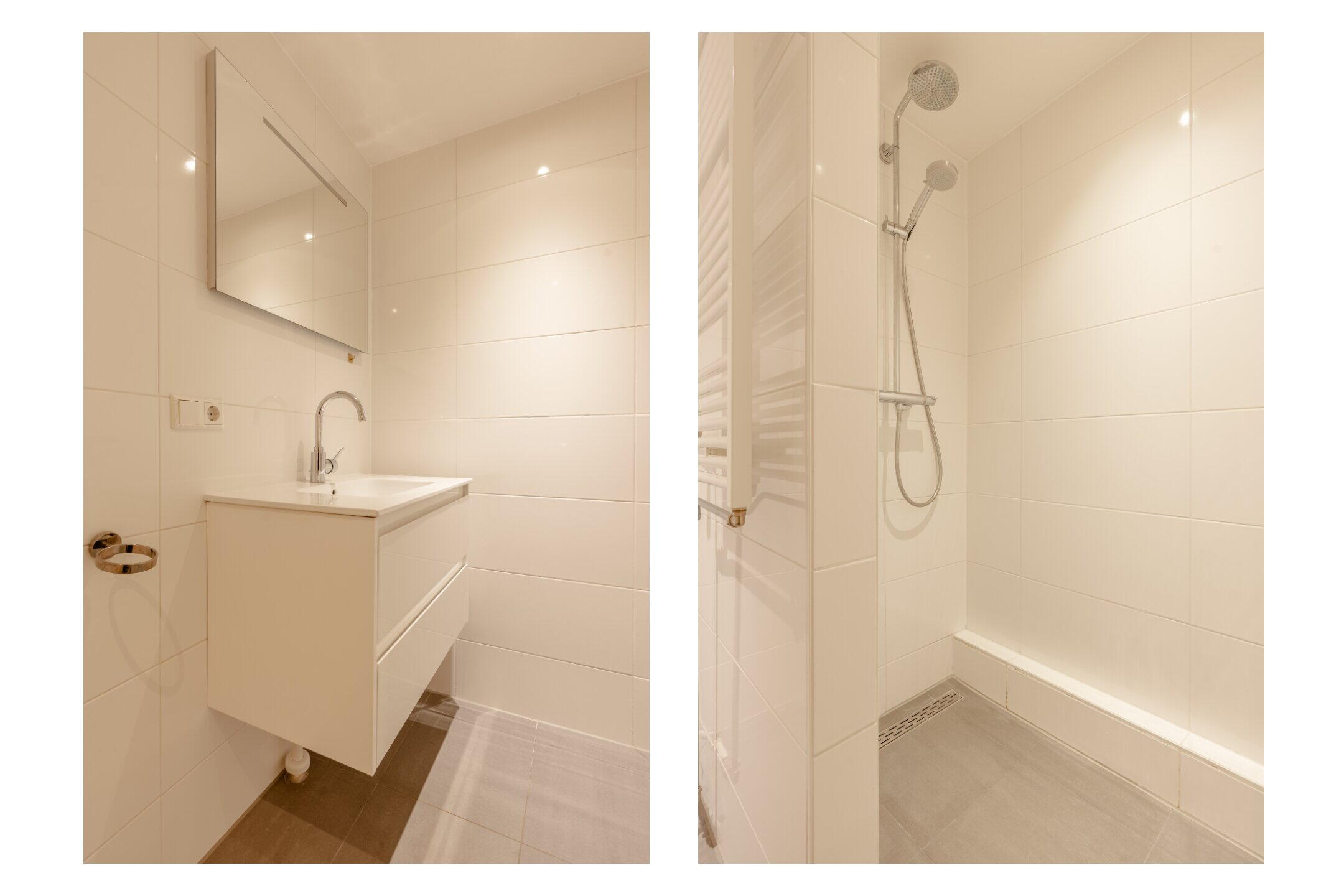 - Wastafel, wastafelmeubel, inloopdouche, wasmachineaansluiting