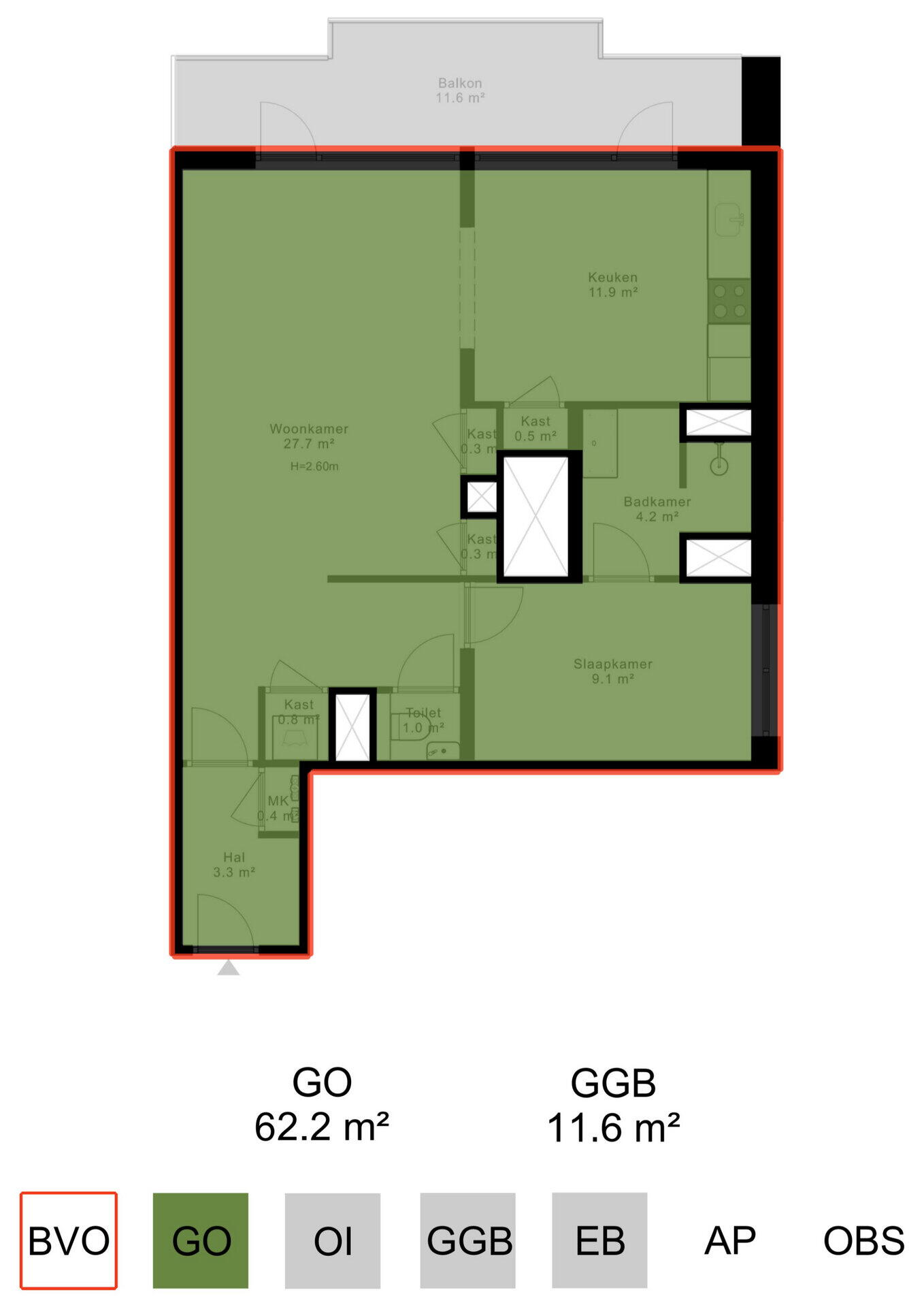 - Woonoppervlakte circa 62m²